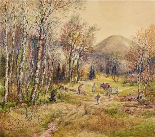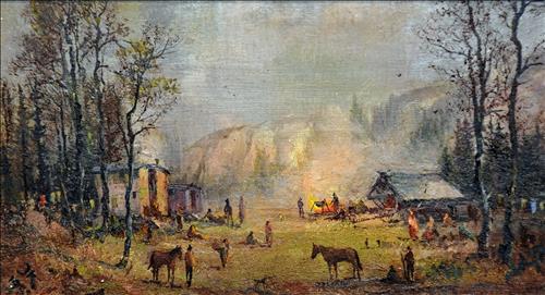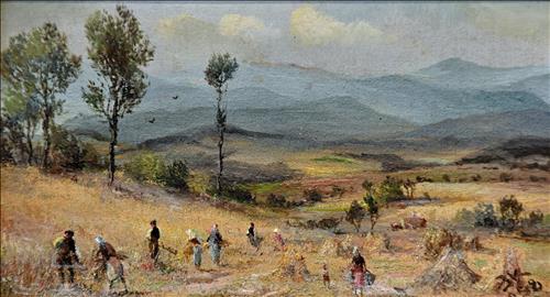 Olej, karton, 15 cm x 25 cm. Signováno a datováno 1958 vpravo dole. Na zadní straně razítko.