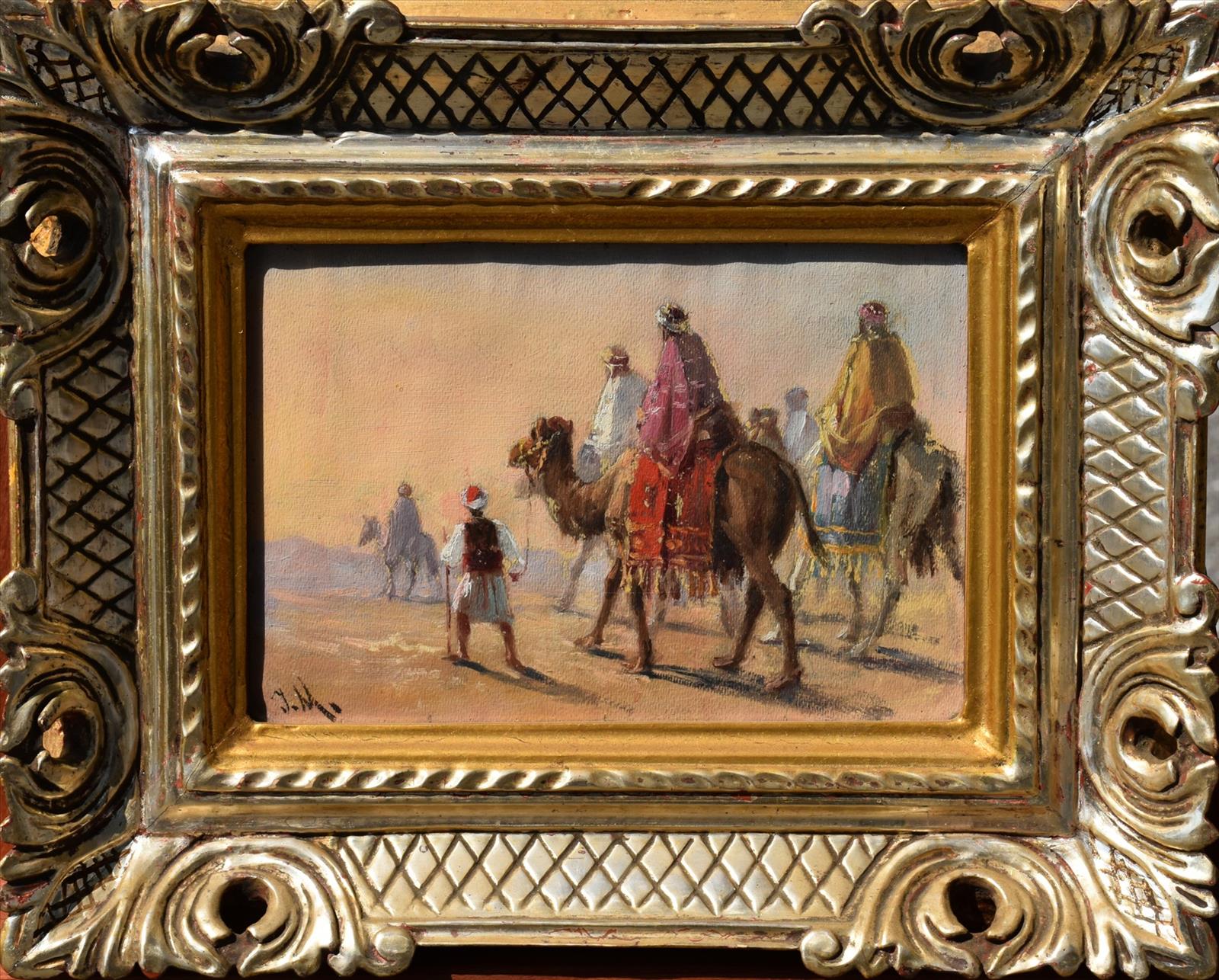 Olej, karton, 16,5 cm x 23 cm. Signováno monogramem vlevo dole. Zaskleno.