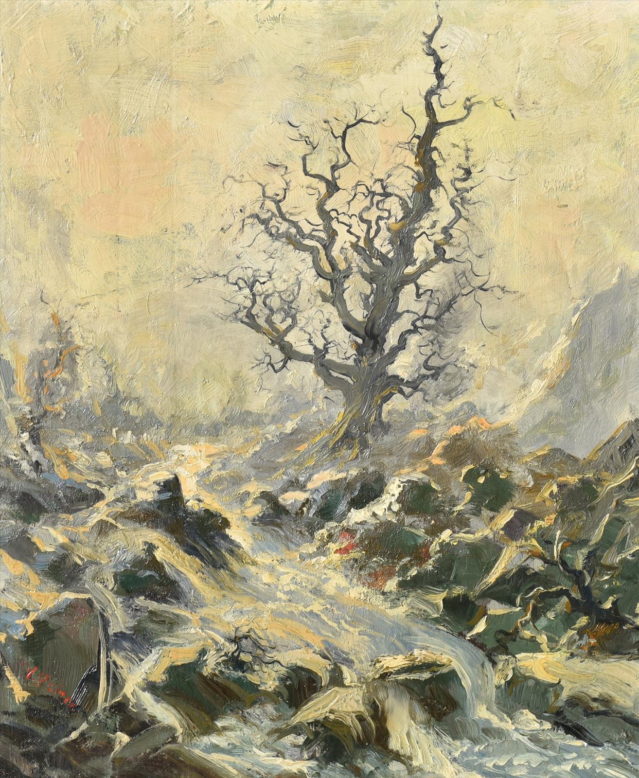 Olej, plátno, 59 cm x 50 cm. Signováno vlevo dole. Na zadní straně štítky.