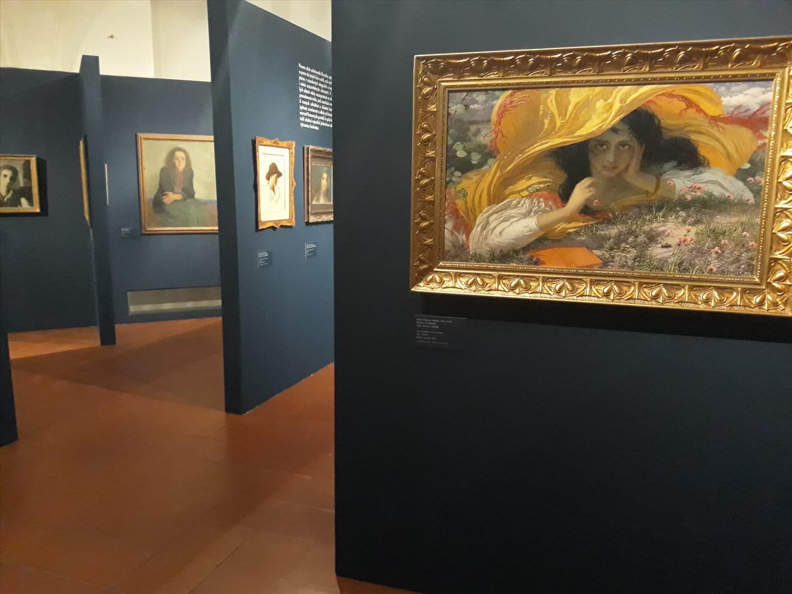 Olej, plátno, 60 cm x 100 cm. Signováno vpravo dole. Okolo roku 1900. Vystavováno, publikováno, Portrét v Čechách, Císařská konírna Pražského hradu 2019 - 2020, publikováno v katalogu výstavy strana 131. Autorova díla zastoupeny v Musée d'Orsay. Vrcholný reprezentant evropské secese. Znalecký posudek PhDr. Michael Zachař.