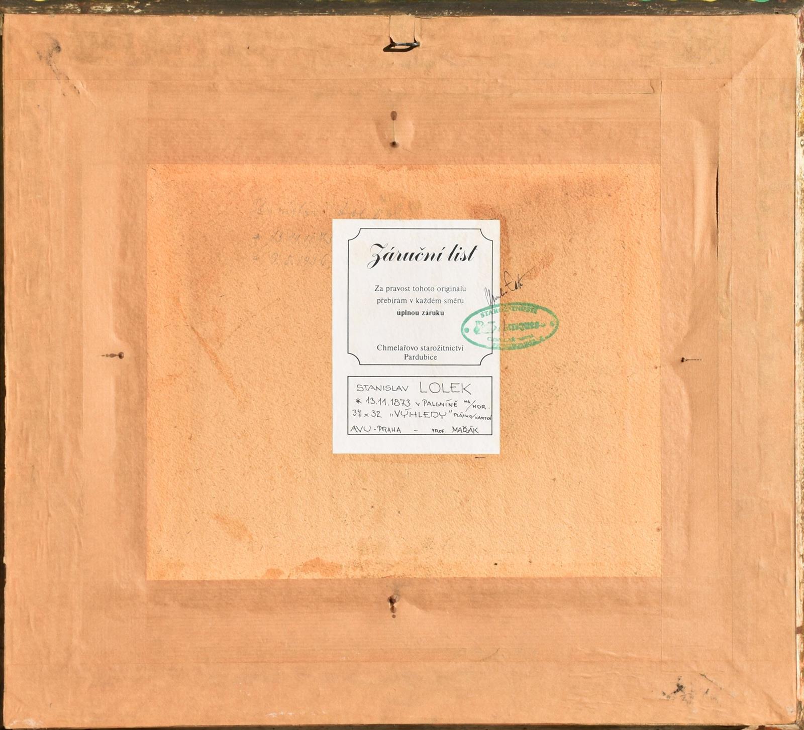 Olej, plátno, fixované na kartonu, 32 cm x 37 cm. Signováno a datováno vpravo dole. Zaskleno. Pravost ověřil PhDr. Michael Zachař.