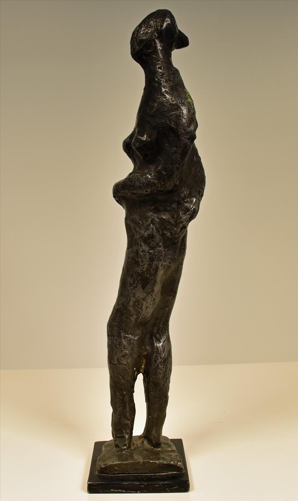 Slitina, cín, olovo, výška bez podstavce 36 cm. Nesignováno. Osobní dar J. Baucha malíři Z. Šputovi.