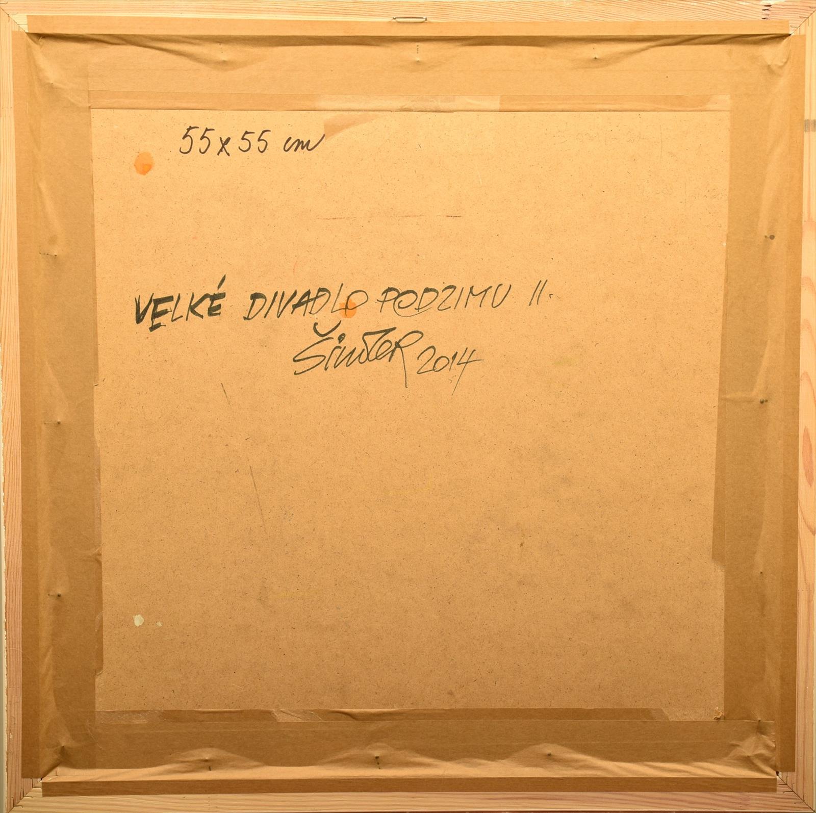 Sololit, tempera, 50 cm x 50 cm. Signováno vpravo dole.