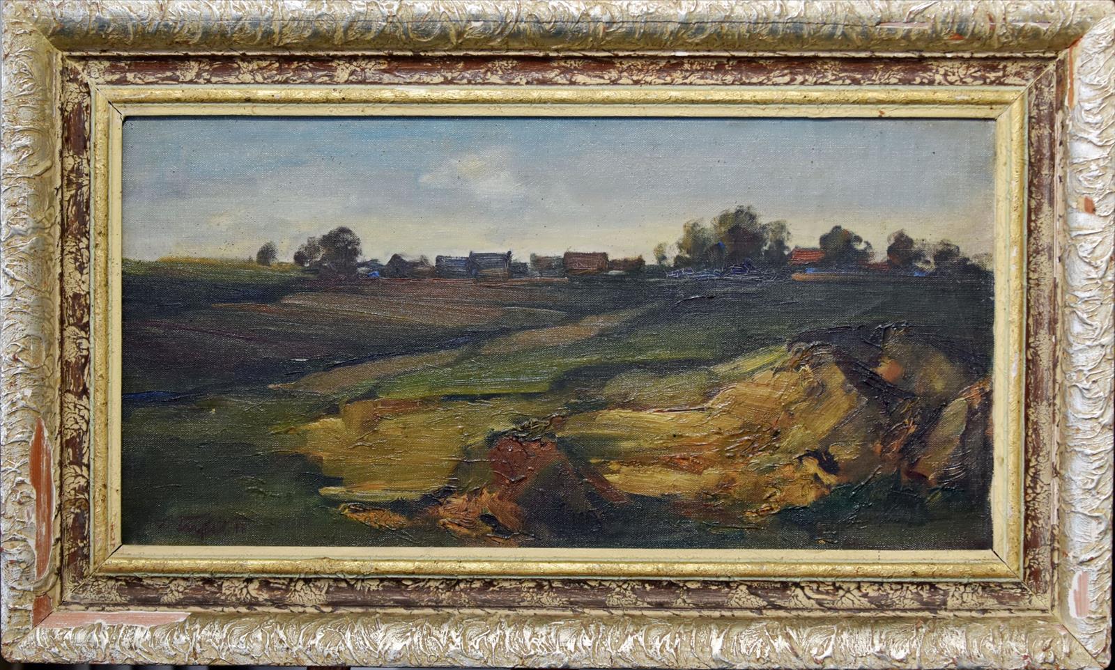 Olej, plátno, 35 cm x 70 cm. Signováno a datováno vlevo dole. Rám místy poškozen. Na zadní straně záruční list.