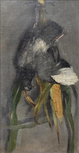 Olej, plátno, fixované na kartonu, 62 cm x 35 cm. Signováno a datováno vlevo nahoře. Malba mírně poškozena. Rám poškozen.
