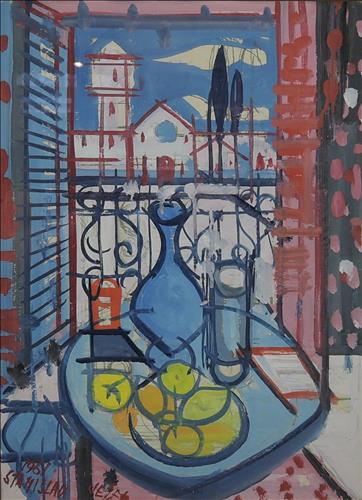 Tempera, 32 x 43 cm. Signováno a datováno vpravo dole. Zaskleno, sklo naprasklé.