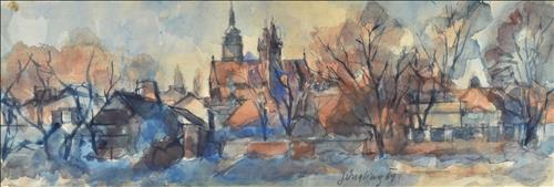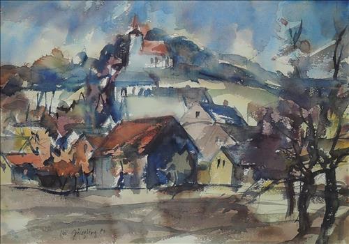 Akvarel, 39 x 56 cm. Signováno a datováno vlevo dole. Zaskleno.