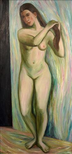 Olej, plátno, 130 cm x 67 cm. Signováno vlevo dole.
