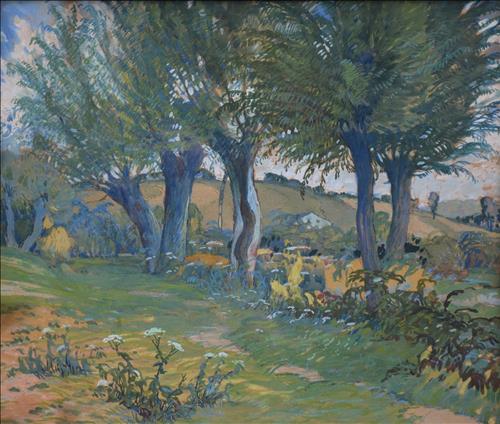 Kombinovaná technika, 38,5 cm x 45 cm. Signováno vpravo dole. Zaskleno.