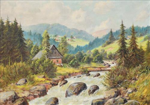 Olej, plátno, 69 cm x 100 cm. Signováno vpravo dole.
