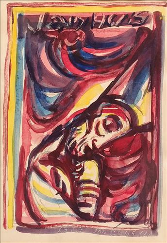 Akvarel, kombinovaná technika, 23 cm x 39 cm. Signováno a datováno vlevo dole. Zaskleno. Osobní dar J. Baucha malíři Z. Šputovi.