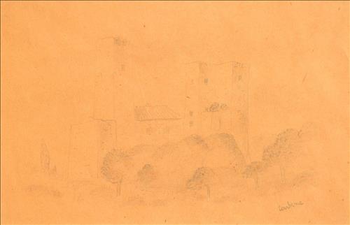 Tužka, papír, 16 cm x 24,5 cm. Signováno vpravo dole. Zaskleno.