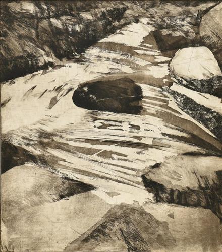 Lept s akvatintou na papíře, 60 cm x 54 cm. Signováno vpravo dole. Vlevo 2/50, dole uprostřed popsáno. Zaskleno.