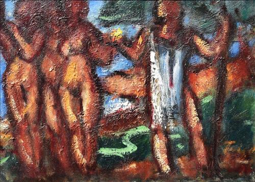 Olej, karton, 21,5 cm x 27,5 cm. Signováno vpravo dole. Místy mírně poškozeno.