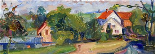 Olej, sololit, 35 cm x 73 cm, 25 cm x 71 cm a 20 cm x 52 cm. Všechny signované.