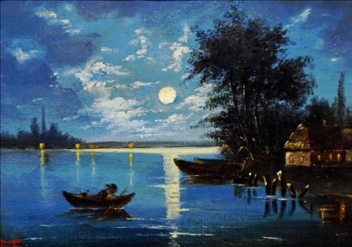 Olej, plátno, fixované na kartonu, 13 cm x 17 cm. Signováno vlevo dole. Na zadní pozůstalostí razítko.