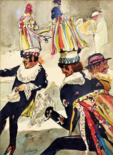 Kombinovaná technika, papír, 30 cm x 21 cm. Signováno a datováno vlevo dole. Zaskleno.