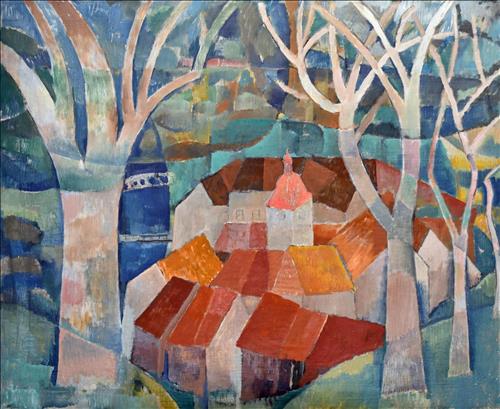 Olej, plátno, 90 cm x 110 cm. Signováno a popsáno na zadní straně.
